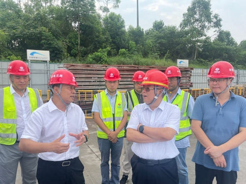 蔣宗全、王英俊來(lái)到官塘站,聽(tīng)取了項目負責人關(guān)于施工進(jìn)度、防汛應急預案、安全文明施工、工程重難點(diǎn)等工作的介紹,并詳細詢(xún)問(wèn)了官塘站龍門(mén)吊安裝及盾構始發(fā)籌備工作推進(jìn)情況。
