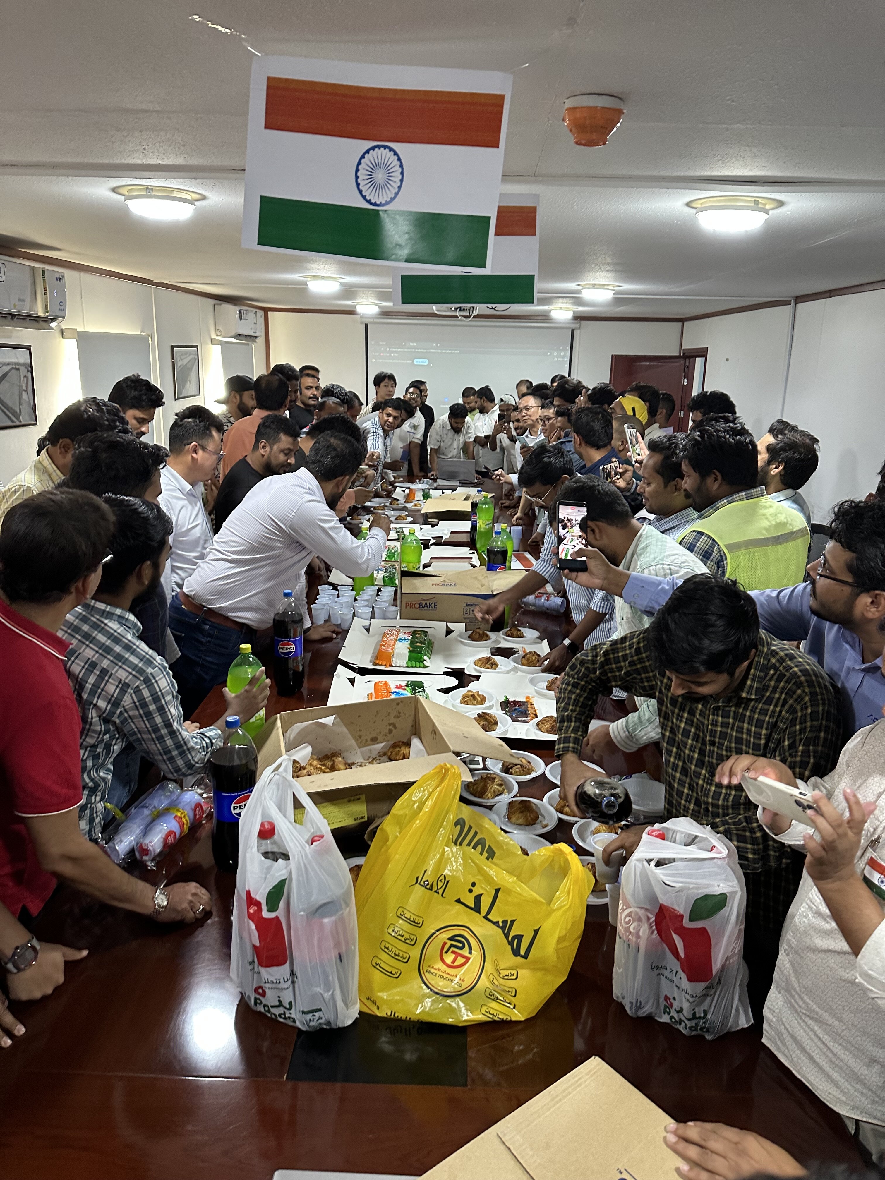 8月14日和15日,沙特國王港項目部在現場(chǎng)辦公室分別為來(lái)自巴基斯坦和印度的外籍員工組織了“獨立日”慶?;顒?dòng),表達了對外籍員工的尊重和關(guān)懷,更加彰顯了在多元文化背景下的屬地化管理理念。
